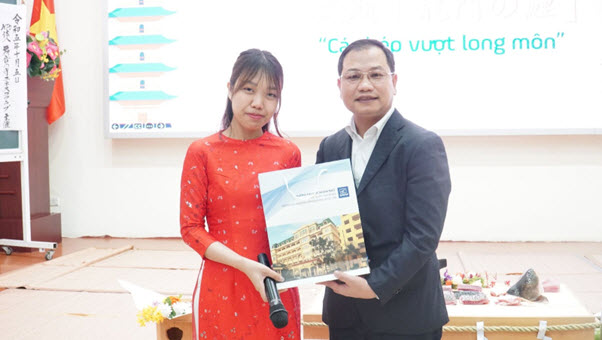 Cuối buổi lễ, Phó Hiệu trưởng Hoa Ngọc Sơn trao hoa và quà thay cho lời cảm ơn chân thành đến các nghệ sĩ Nhật Bản đã dành thời gian đến biểu diễn tại ULIS.