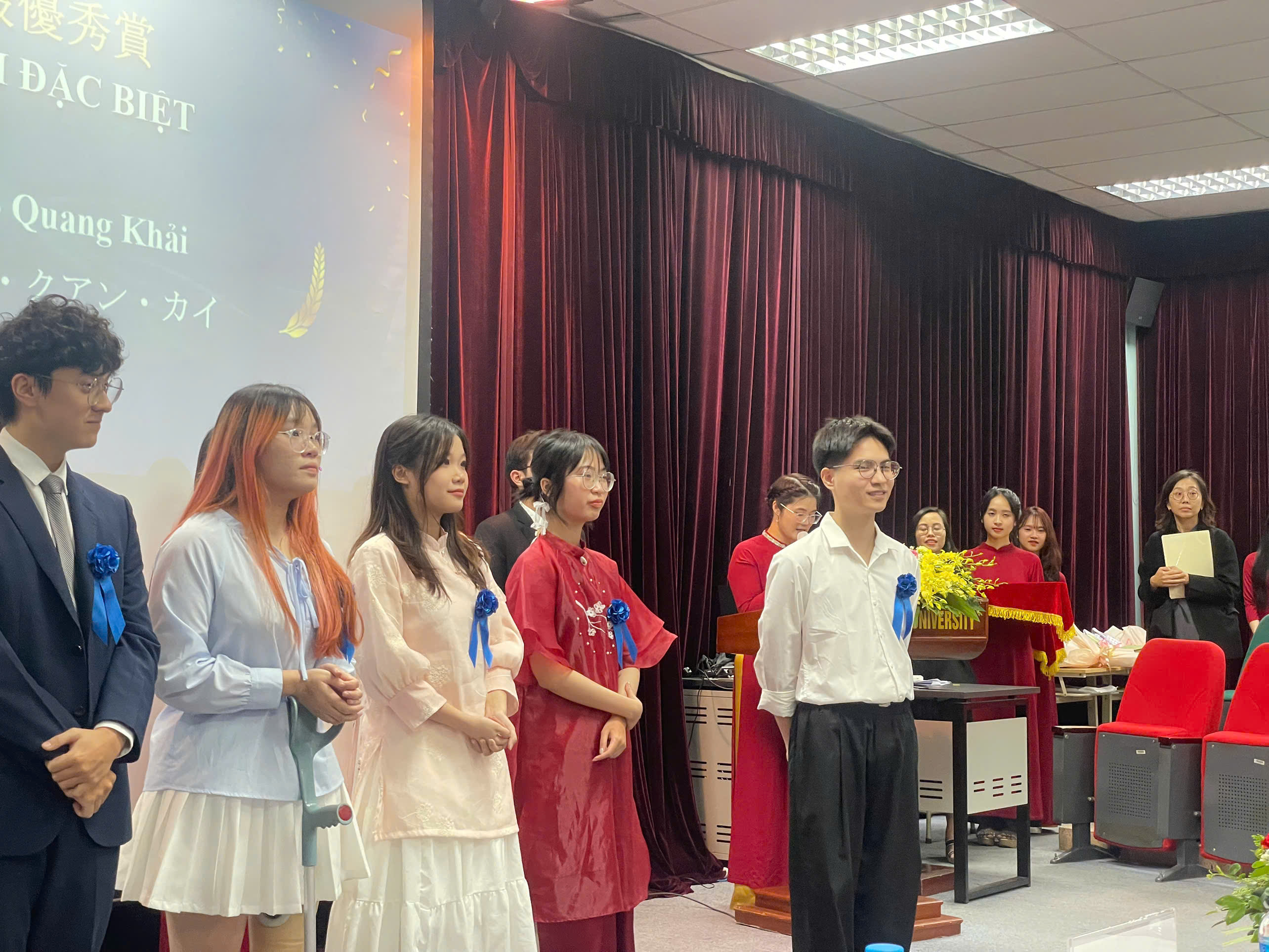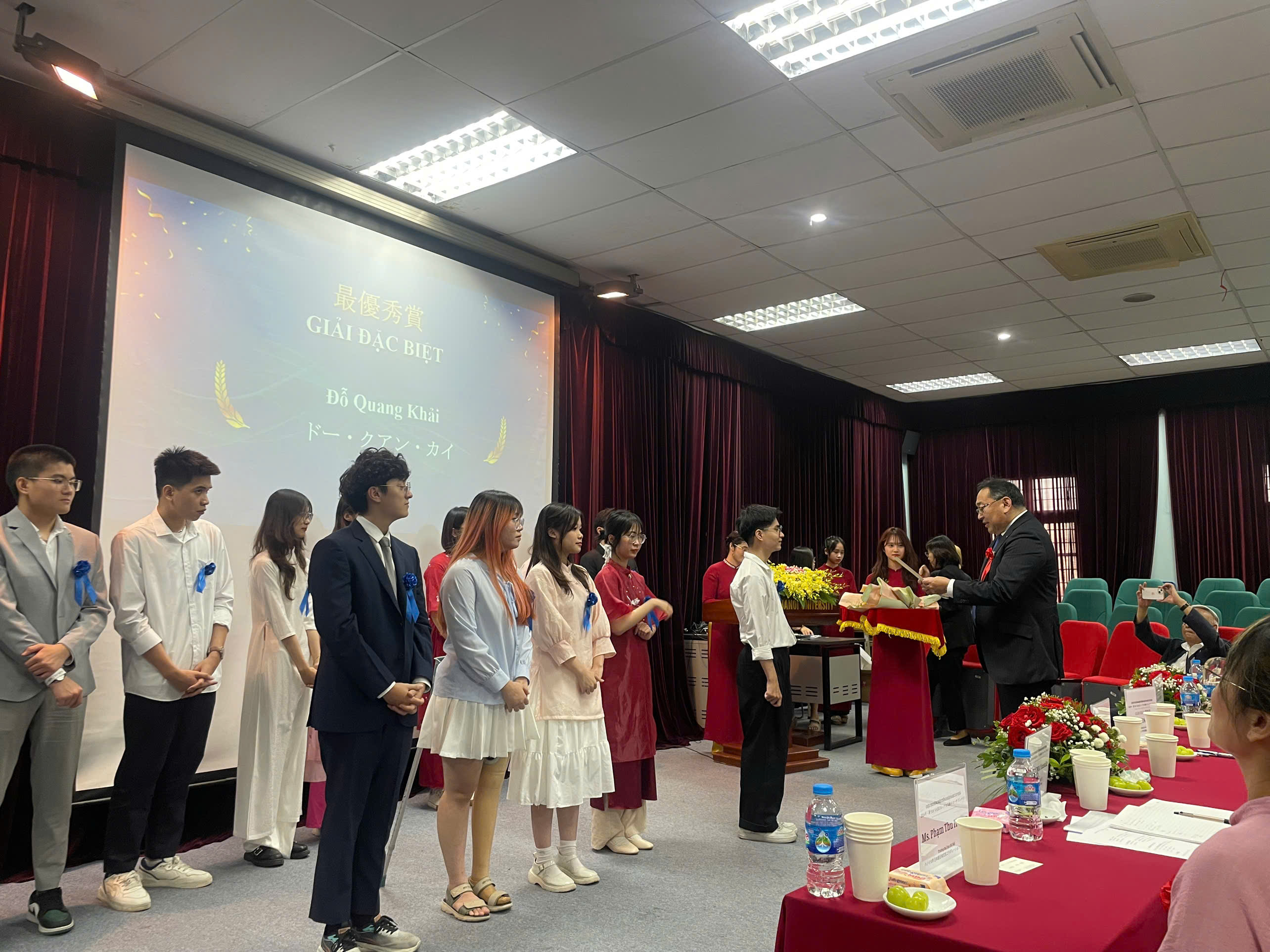 Em xin gửi lời cảm ơn chân thành đến các thầy Kamimura, cô Đan, cô Nguyệt đã luôn nâng đỡ, đốc thúc và đào tạo em trong quá trình tham gia cuộc thi. Và em cũng xin gửi lời cảm ơn đến bạn Mai và Quỳnh Anh - những người bạn đã luôn sát cánh và cổ vũ nhiệt tình giúp em đạt được thành tựu này.