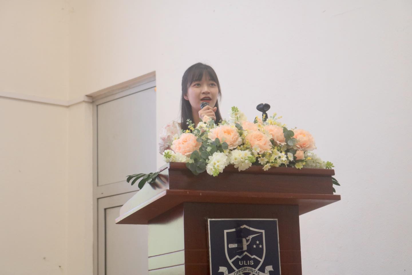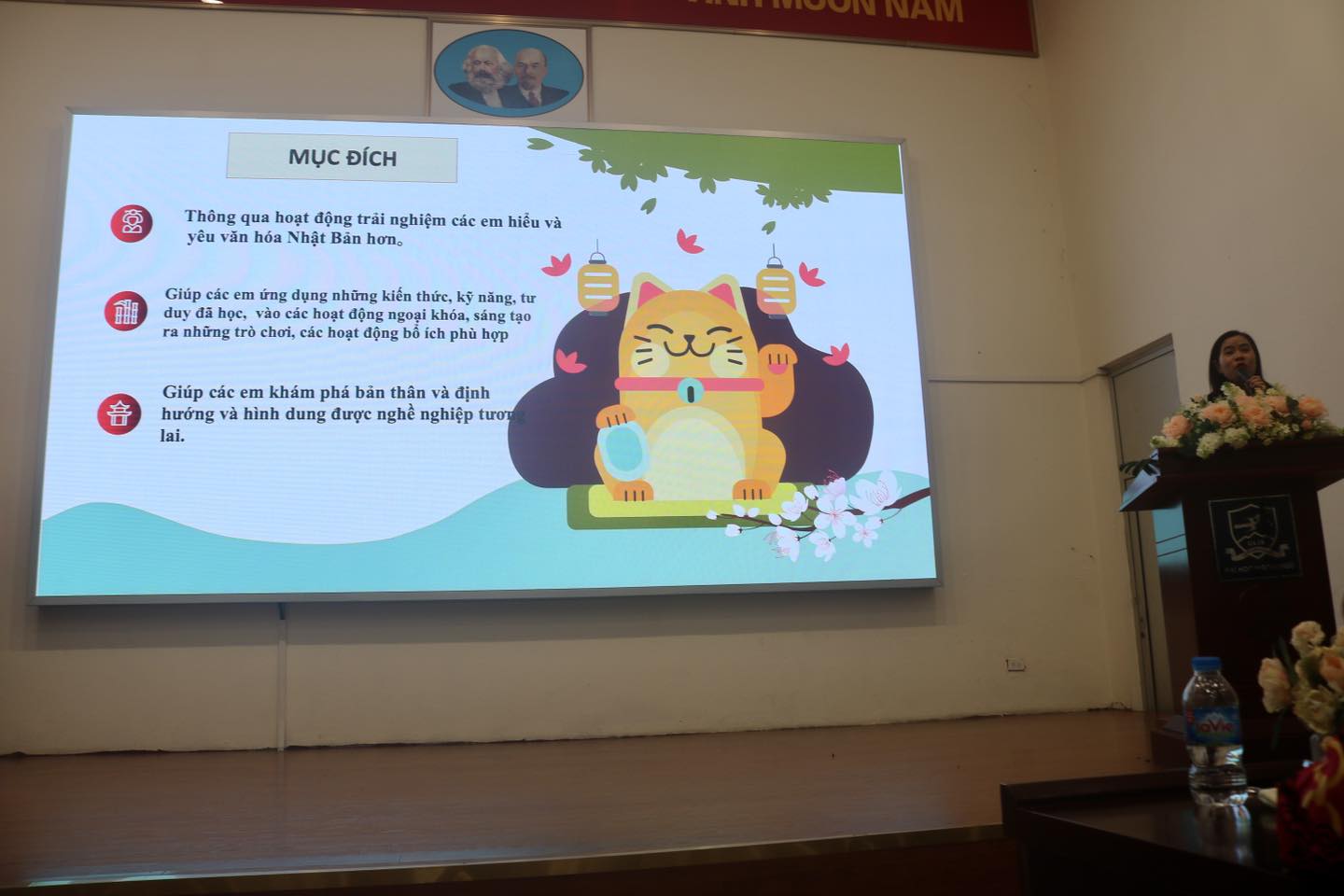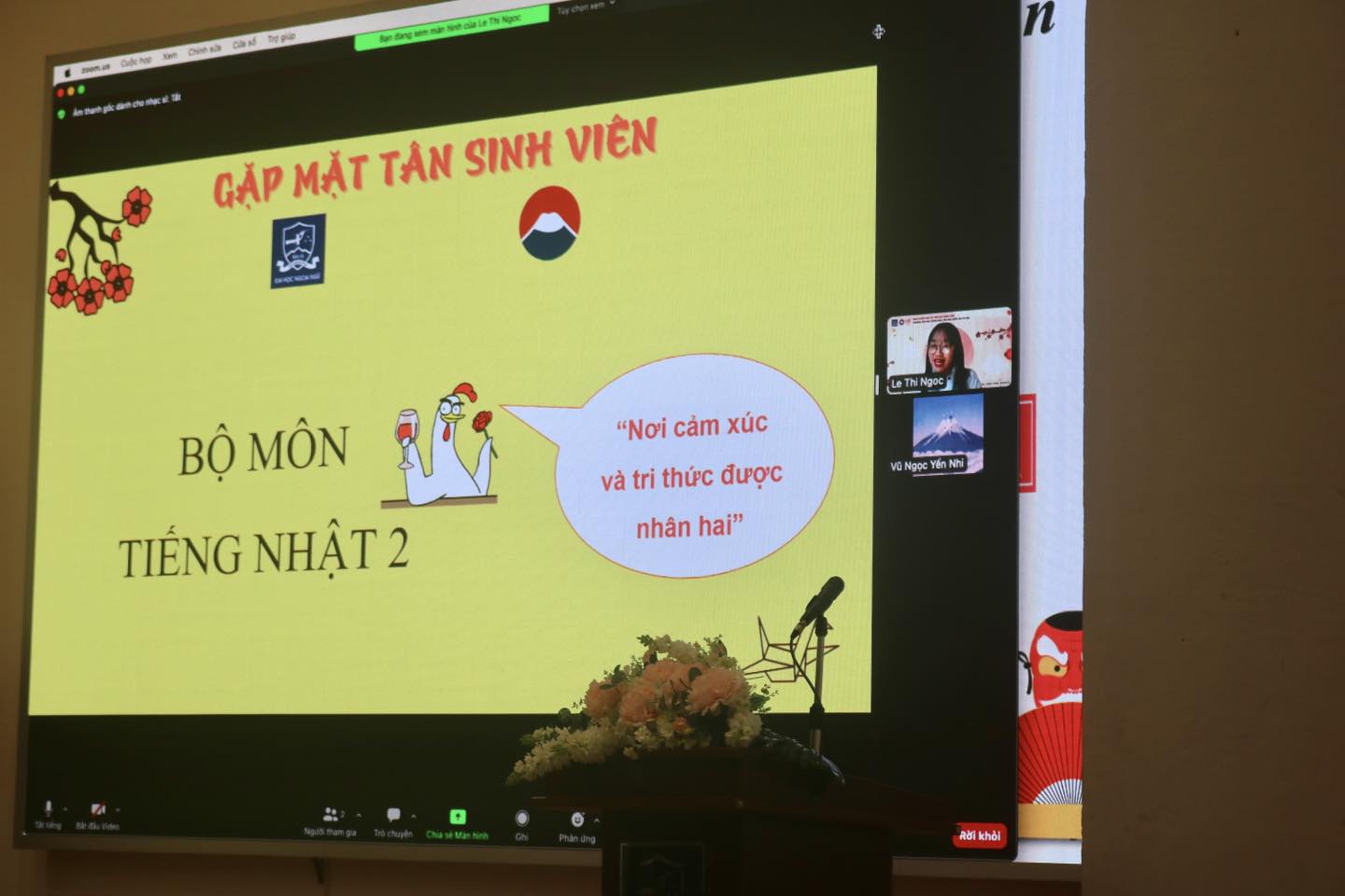 Khai mạc buổi lễ, cô Trưởng Khoa Đào Thị Nga My bày tỏ niềm vui mừng được chào đón các tân sinh viên đến với Khoa NN&VH Nhật Bản, ĐHNN-ĐHQGHN; mong muốn các em sinh viên sẽ chăm chỉ học tập, liên tục cố gắng trong chặng đường 4 năm đại học sắp tới, tiếp bước các anh chị đi trước xây đắp lên Khoa Nhật FJLC vững mạnh và phát triển, mong các em không chỉ thu nạp được tri thức mà còn có thể xác định rõ và làm chủ tương lai của chính mình về sau.