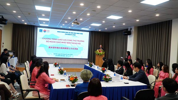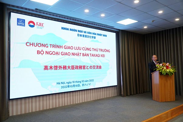 Ngày 18/10/2022, Trường Đại học Ngoại ngữ, ĐHQGHN đã tổ chức Chương trình giao lưu cùng Thứ trưởng Bộ Ngoại giao Nhật Bản Takagi Kei cho các sinh viên Khoa NN&VH Nhật Bản.